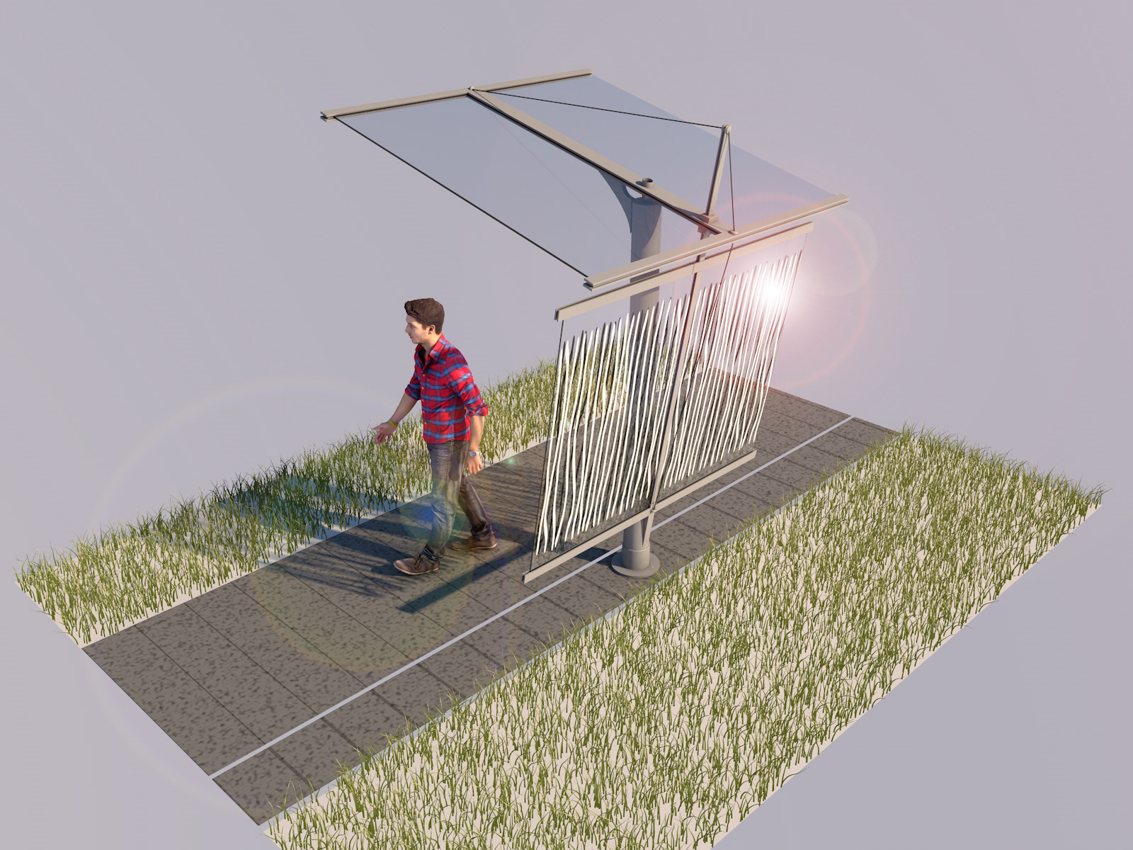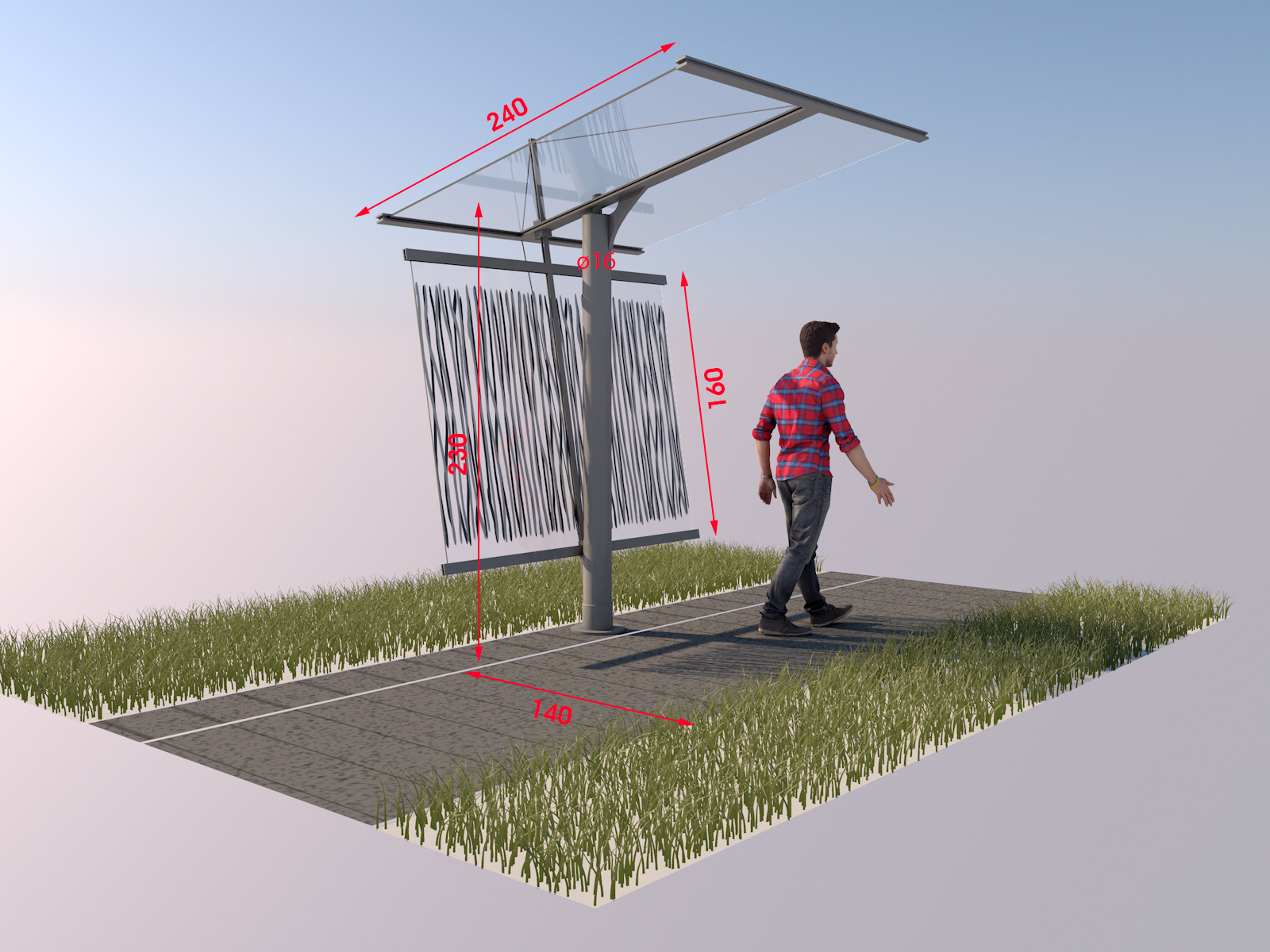 Principe module porte-à-faux pour passage couvert.